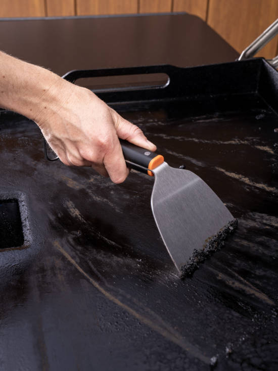 · Scraper for cleaning grill and chopping food