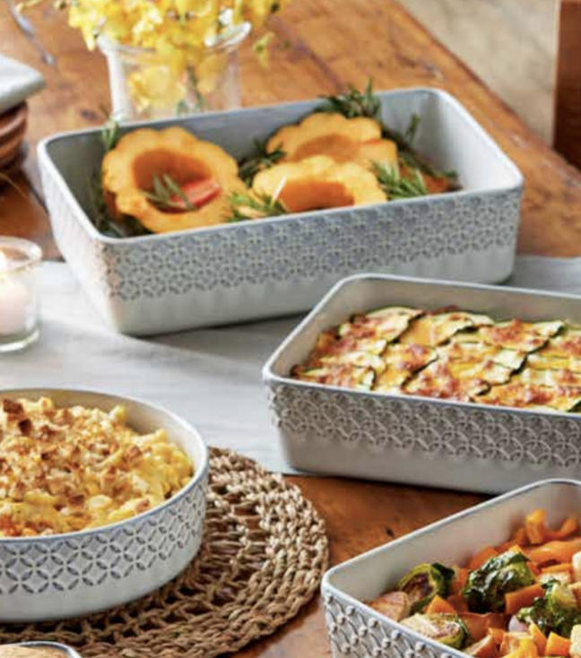 With its reactive glaze finish and embossed detailing, it doubles as serveware, making the transition from oven to table seamless and stunning. Durable and practical, it’s oven-safe up to 400°F and dishwasher-safe for stress-free cleanup—ideal for both everyday dinners and holiday gatherings.
