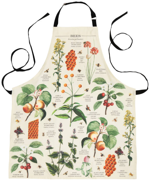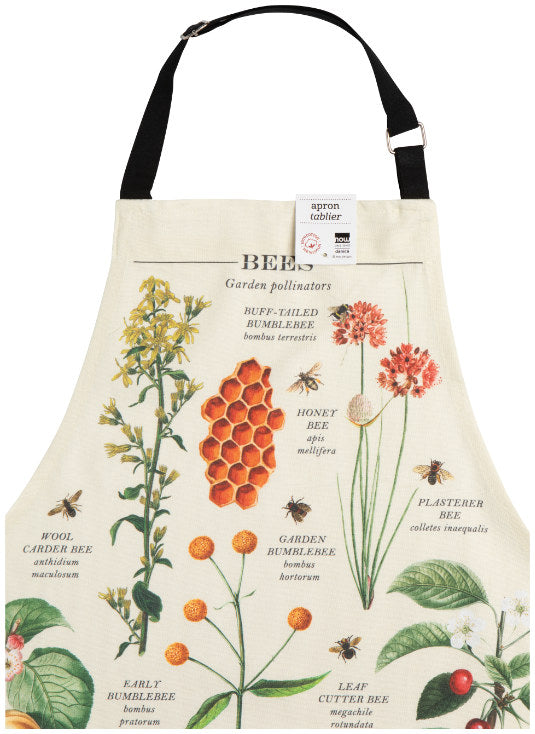 Inspired by vintage botanical illustrations, this fine print Bee Varieties apron is digitally printed for maximum realism and detail. It's functional, beautiful, and educational to boot. A composition of detailed illustrations highlights each unique pollinator in our Bee Varieties collection, honoring nature’s smallest heroes with botanical precision and vintage-inspired colors—digitally printed for a color spectrum as rich and vibrant as the flowers they frequent.