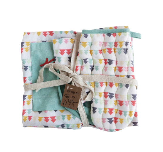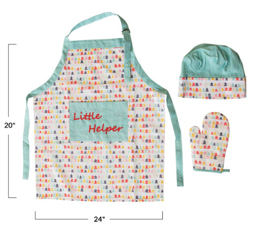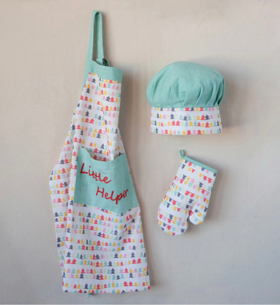 Made out of cotton, this apron comes with a chef hat and oven mitt and perfect for Little Helpers.