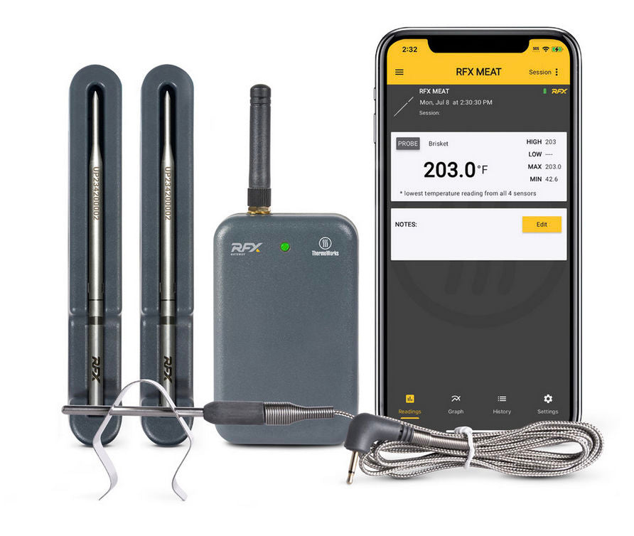 Whether you’re smoking, grilling, or slow-cooking, RFX™ by ThermoWorks gives you the confidence to step away from the grill — knowing your meat is always under control.