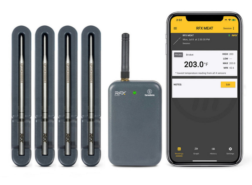 Whether you’re smoking, grilling, or slow-cooking, RFX™ by ThermoWorks gives you the confidence to step away from the grill — knowing your meat is always under control.