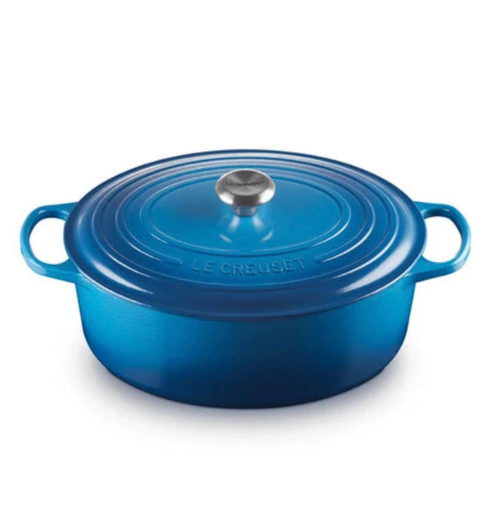 Expertly crafted from enameled cast iron, the everyday versatility of the Dutch oven makes it ideal for everything from slow-cooking and braising to roasting, baking, frying and more. The oval shape is particularly suited for larger cuts of meat, whole chickens and for baking oval-shaped loaves of bread.