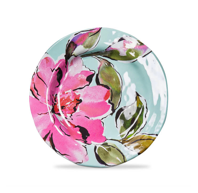 Serve your salads in style with the In Bloom Melamine Salad Plate. Crafted from BPA-free and shatterproof melamine, this plate offers the elegant look and feel of ceramic with added durability. Featuring an exclusive tag floral design with organic shapes and finishes, it's perfect for both indoor and outdoor dining. Dishwasher safe for easy cleanup. Not recommended for microwave use