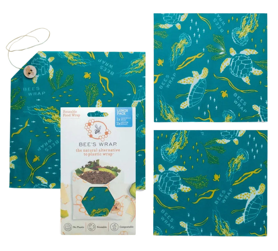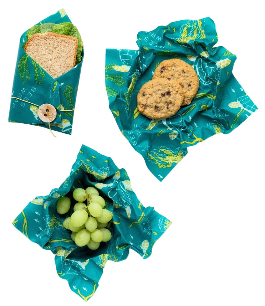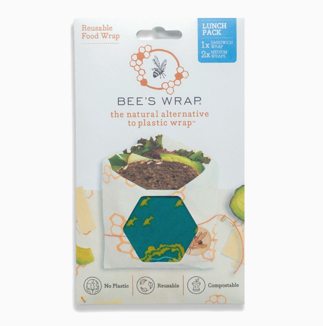 Bee’s Wrap® reusable food storage wraps provide a waste-free way to pack lunch for school, work, and weekend adventures. Each pack has all you need for lunch on the go with our reusable sandwich wrap featuring our button and tie for securely packing all your sandwich creations, & two of our reusable snack-size medium wraps great for baby carrots, trail mix, or any other lunch sides you'd like to pack!