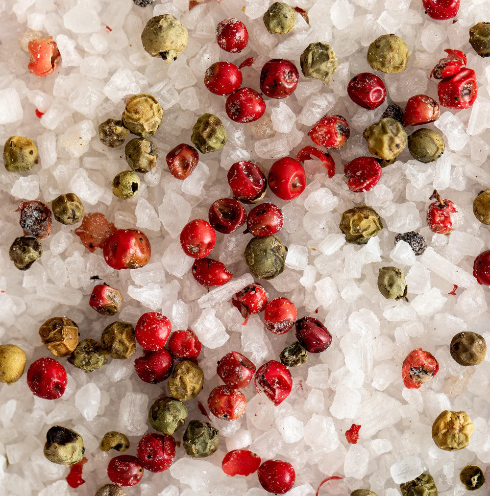 Ingredients: Sea Salt, Green Peppercorns, Pink Peppercorns