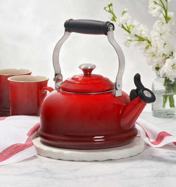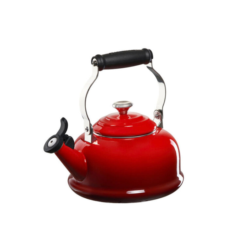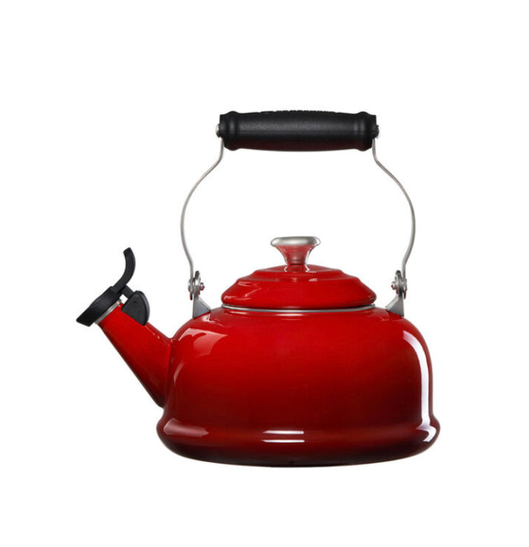 The Le Creuset enamel on steel Classic Whistling Kettle is crafted from fast-heating premium carbon steel and finished with a colorful enamel in our stylish palette of colors to complement any kitchen. Useful for preparing French press coffee, oatmeal and much more in addition to tea, durable carbon steel heats water rapidly, and a fixed single-tone whistle alerts when the water has reached a rolling boil. Chip-resistant, non-reactive, resistant to stains, and easy to clean, Le Creuset kettles make excellent gifts and are a beautiful way to add a touch of color to the kitchen.