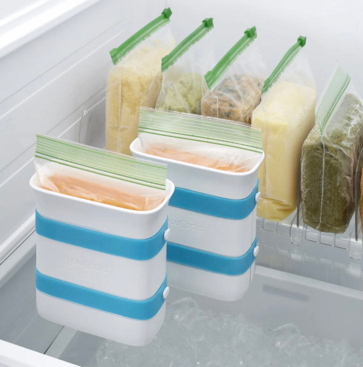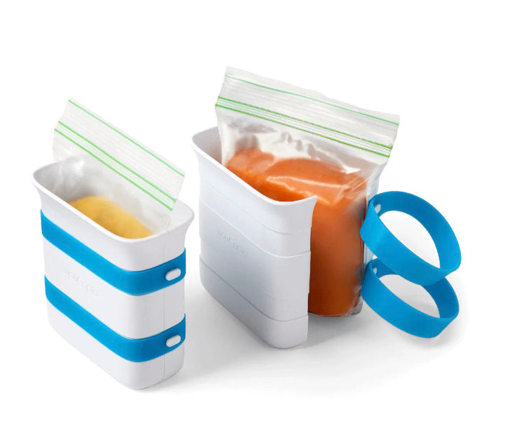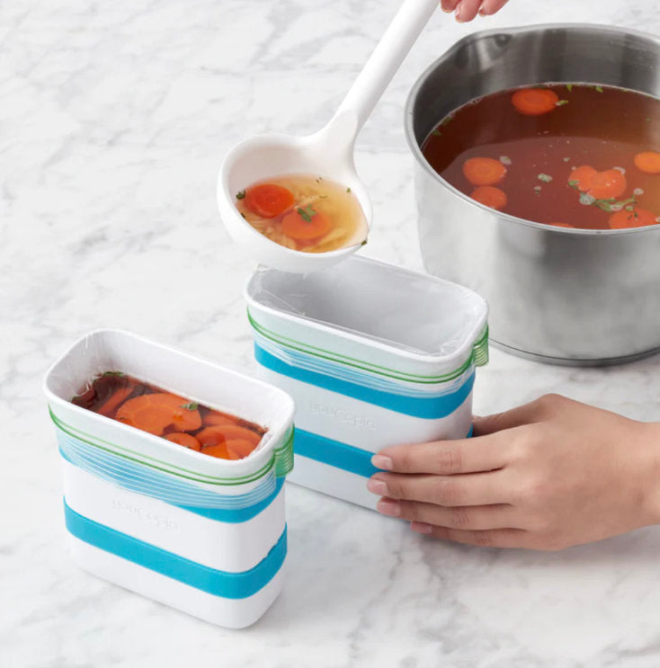Freeze smarter, not harder. Slide a quart-size food storage bag into the mold, fill, and freeze — no spills, no balancing acts.