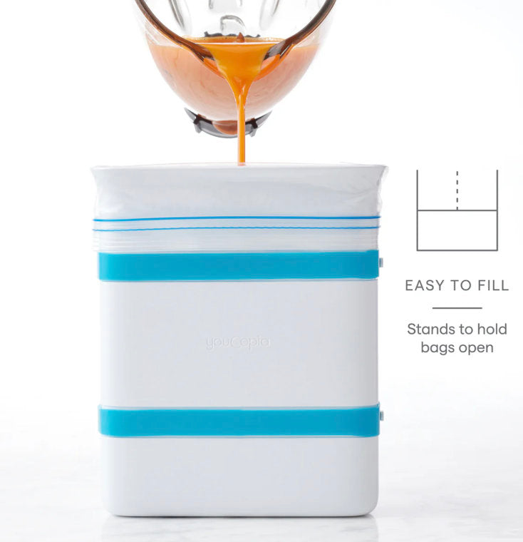 Say goodbye to spills and freezer chaos. The sturdy stand holds your bag upright for mess-free filling — no balancing acts required.