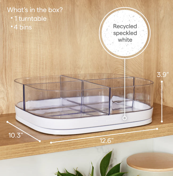 More corners, more capacity. Forget round trays — this rectangular turntable uses every inch for extra storage power.