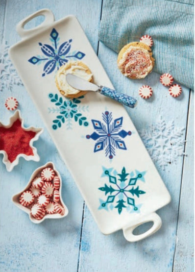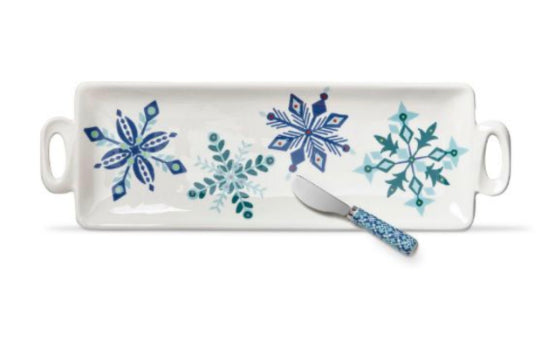 entertain with style! impress your guests with a dramatic presentation of bread, cheese, and more. features fun & festive winter designs, in trendy and modern color. platter comes with matching spreader, perfect for spreading cheese, butter, and jams.