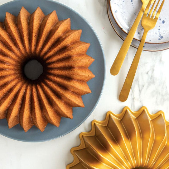 Brilliance Bundt is made of cast aluminum which provides fine details and superior baking performance. Distinctive premium nonstick interiors allow for quick release and easy cleanup.Bold and radiant Bundt shape.