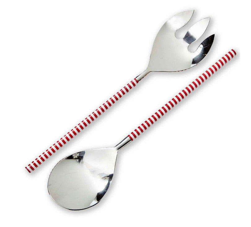 Add a touch of festive fun to your table with this Candy Stripe Serving Utensil Set. Made from stainless steel and enamel, this set features a classic red and white stripe design, perfect for serving up holiday treats.