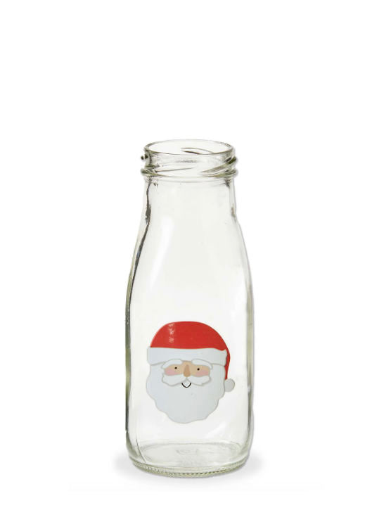 Spread holiday cheer with this festive Santa milk bottle. Perfect for serving chocolate milk or other beverages, this glass bottle features a charming Santa Claus design. Product Details