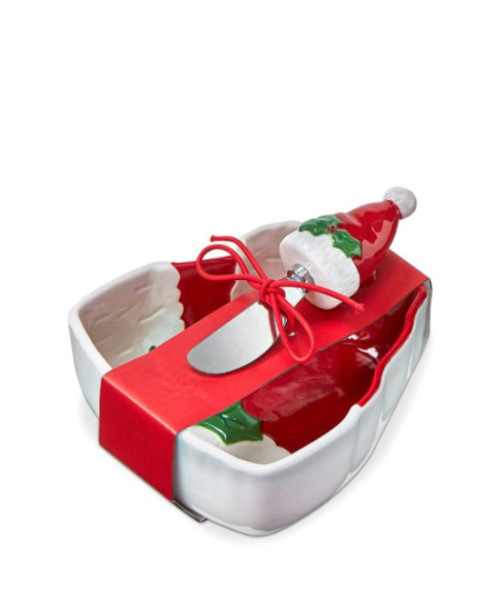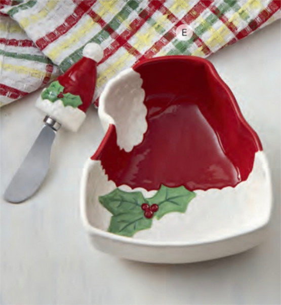 Make the season merry and bright! made in the shape of santa's hat, this adorable bowl features sculpted design and hand-painted details. includes matching spreader, perfect for holiday jams, butters, and more. Surely a festive addition to any holiday display! retail ready packaging makes this a gorgeous and easy gift for christmas.